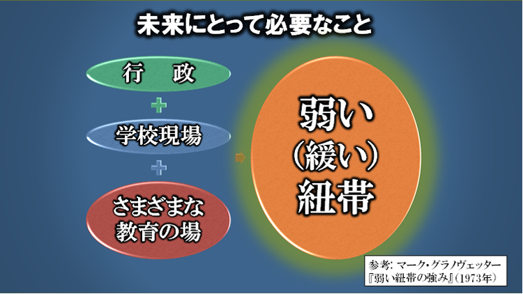 行政、学校、民間が個別に動くのではなく、3者が緩やかに連携して知見を共有し、社会全体でICT活用の在り方を考えていきましょう。