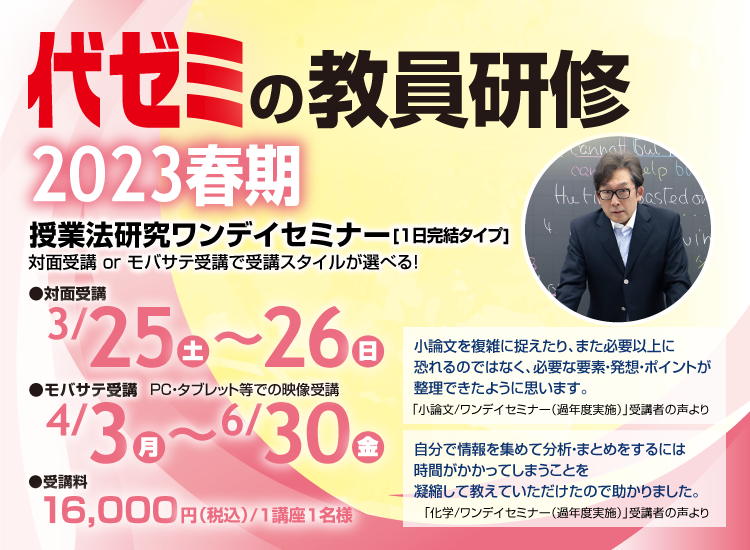 2024年春期に開催の「代ゼミの教員研修」等の情報を更新いたしました。