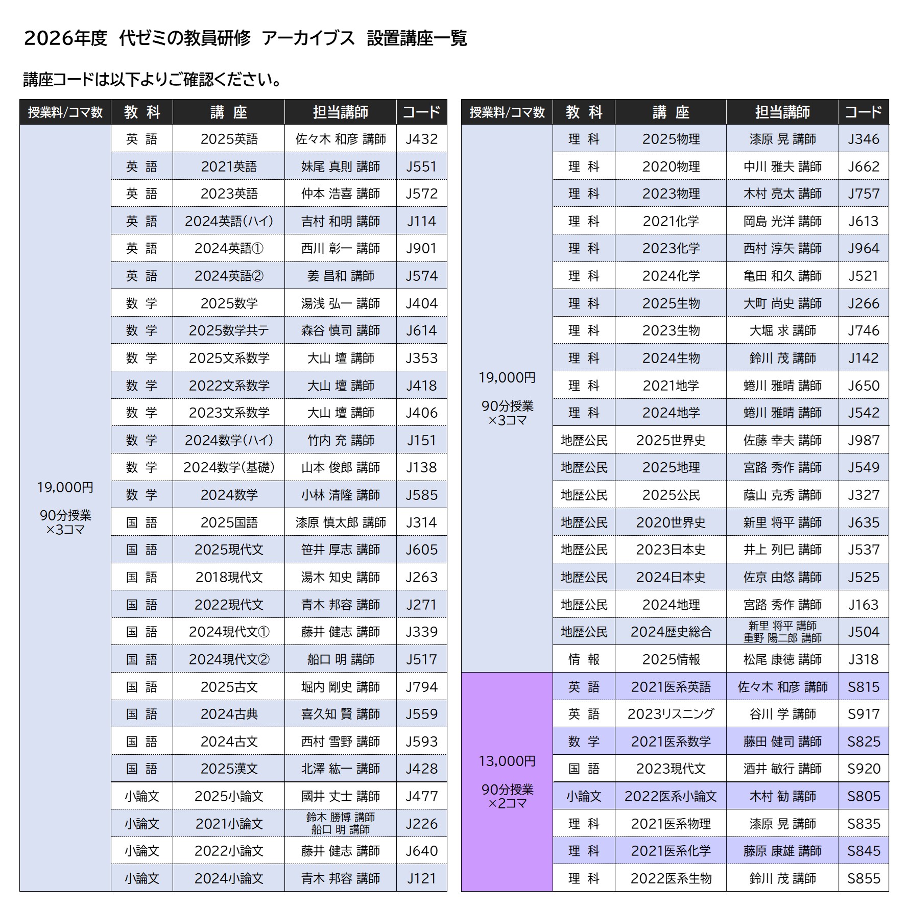 - 講座コード一覧